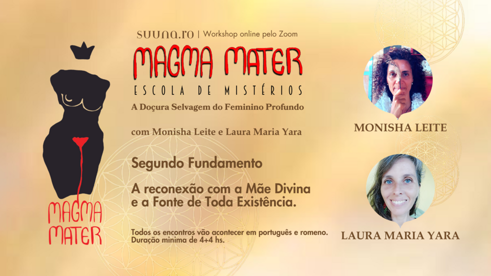 Somos Laura Maria Yara e Monisha Leite, e Magma Mater é a nossa jornada de volta à Dimensão do Feminino Profundo. Aquela de onde nascem a Essência, a Doçura, a Devoção. A Mágica, o Poder, o Amor. Aquela de onde a Mulher Néctar retorna ao seu corpo em profunda reverência e comunhão com a Dimensão do Masculino Sagrado – aquela parte em nós que nos protege, que vai na frente abrindo os caminhos e é a força motriz de direcionamento e expressão da Alma, do Coração.
